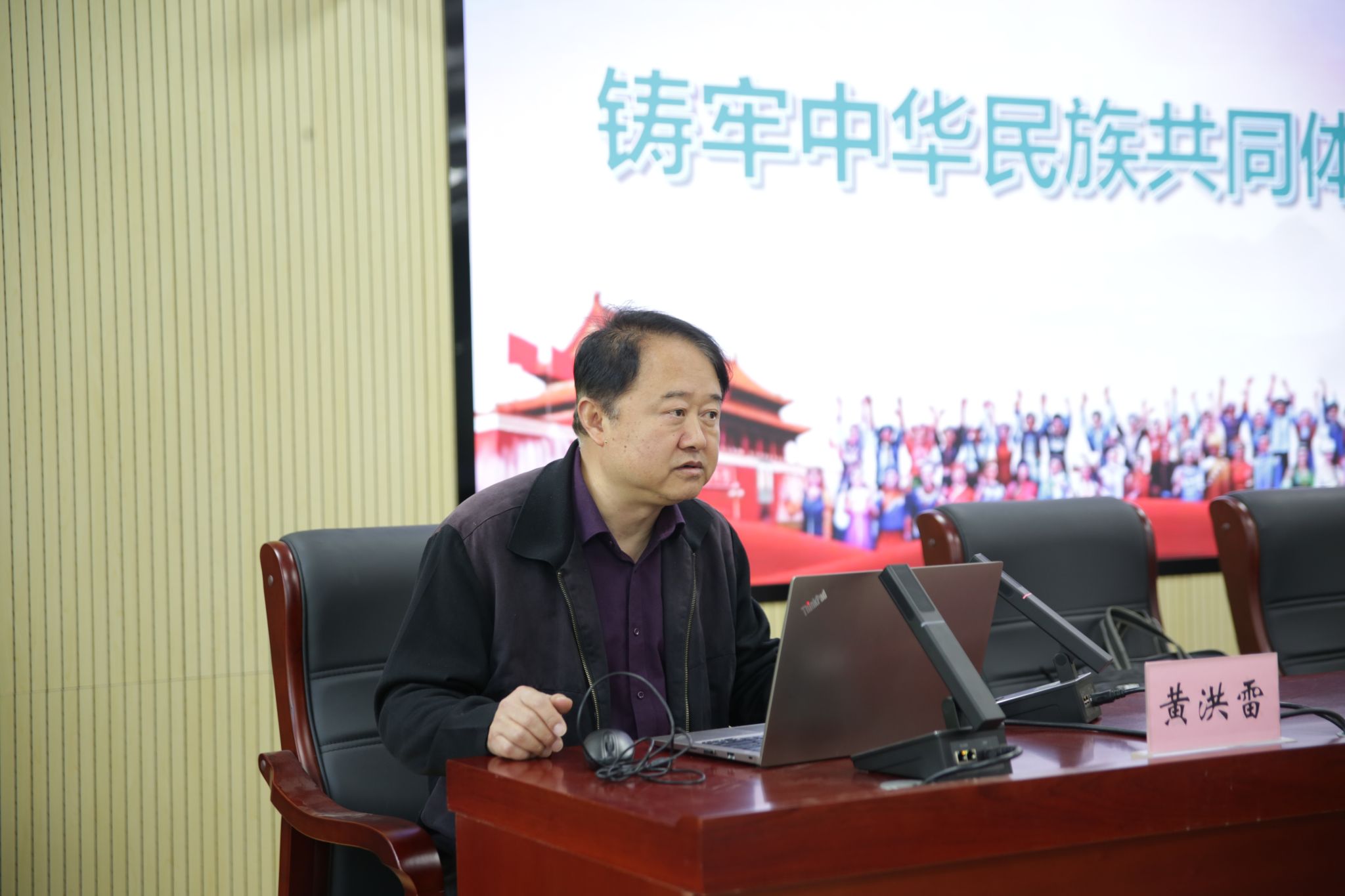 马克思主义学院教授黄洪雷以《铸牢中华民族共同体意识》为题为新生上形势政策课。