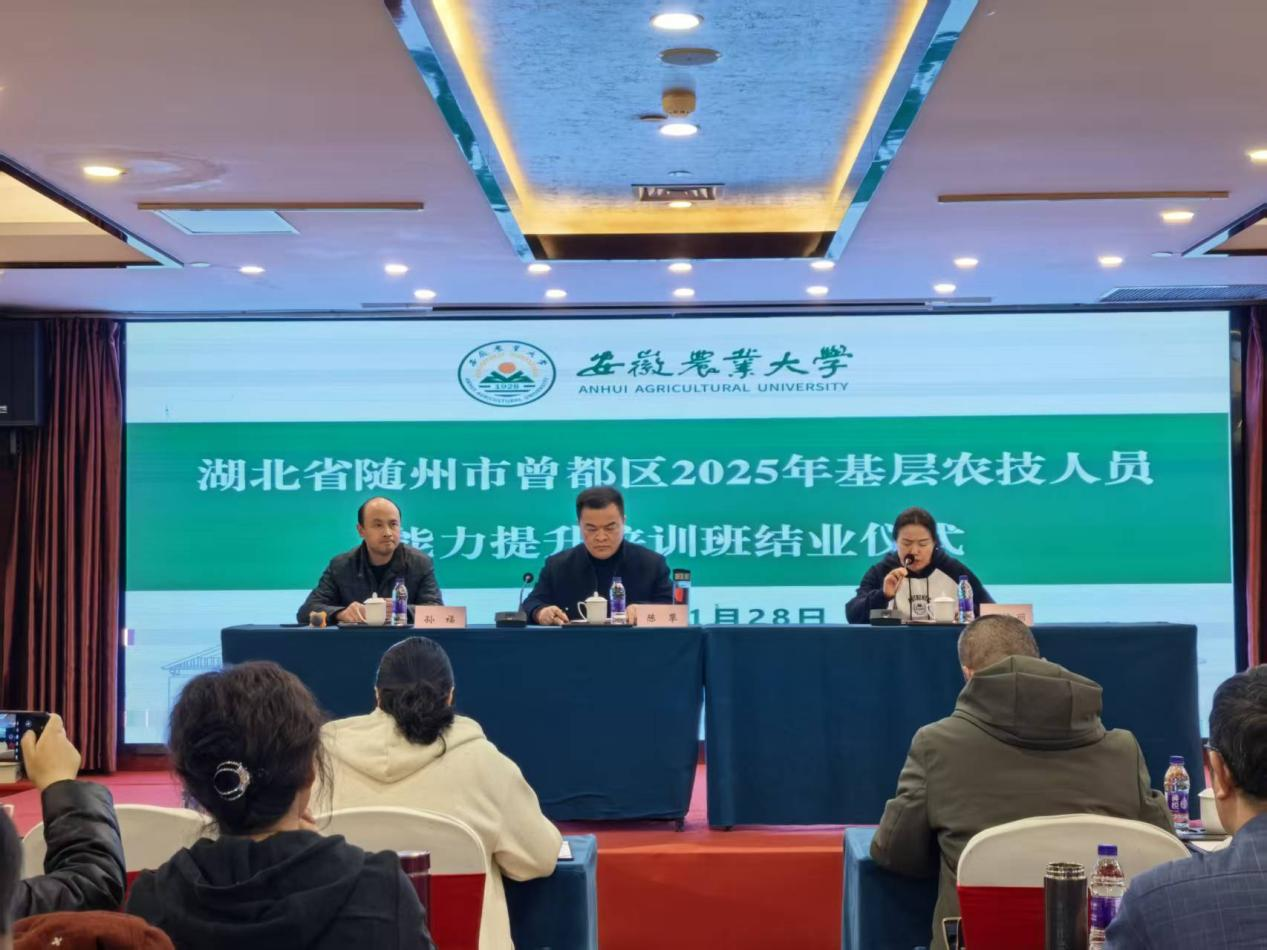 本网讯 为扎实推进基层农技推广体系改革与建设,全面提升农技人员的专业素养与服务能力,11月24日至28日,由安徽农业大学承办的“湖北省随州市曾都区2025年基层农技人员能力提升培训班”顺利举办,来自曾都区的基层农技人员参加了为期五天的系统学习与实地考察。