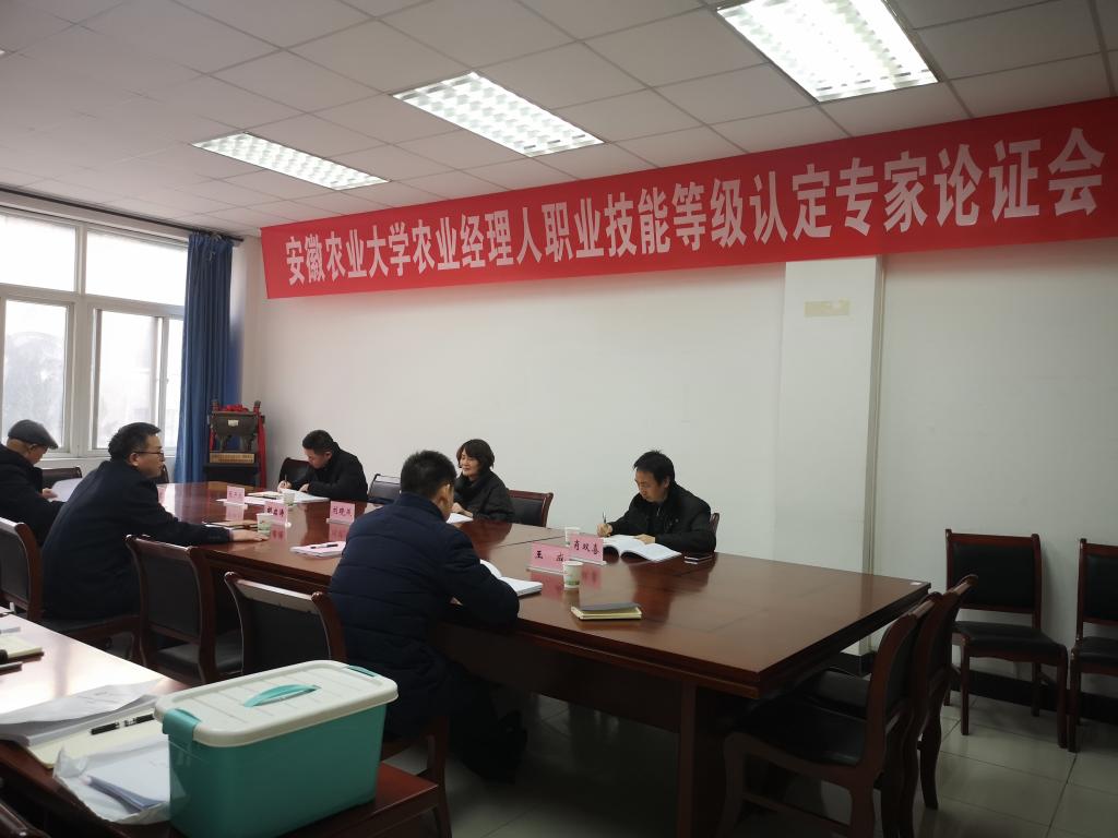 1月15日下午,我校农业经理人职业技能等级认定专家论证会在继续教育学院会议室召开。安徽省人力资源社会保障厅职业能力建设处处长刘晓燕、省职业技能鉴定中心负责同志以及校内专家参加了论证会。