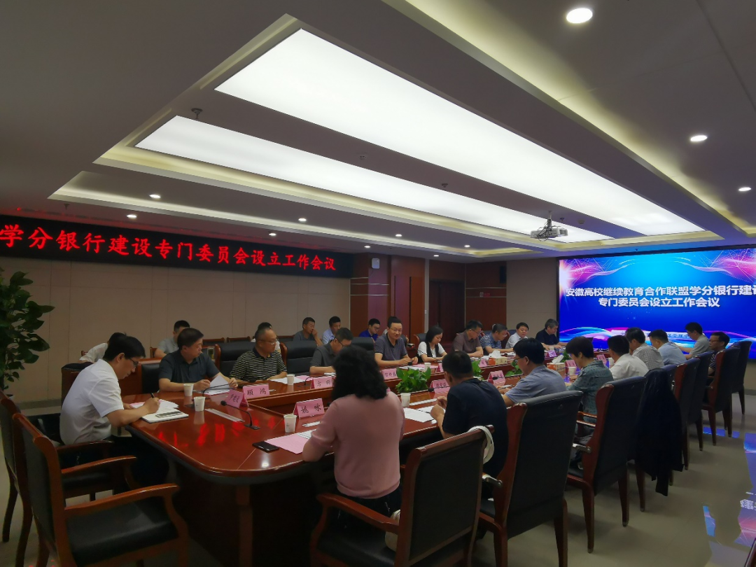 会议邀请上海市终身教育学分银行管理中心副主任(主持工作)陈海建同志作上海市终身教育学分银行建设发展报告;安徽省终身教育学分银行管理中心汇报了我省学分银行建设发展情况;讨论通过安徽高校继续教育合作联盟学分银行建设专门委员会建设方案;会议还就“安徽省终身教育学分银行服务体系建设管理办法”修改完善进行了交流。