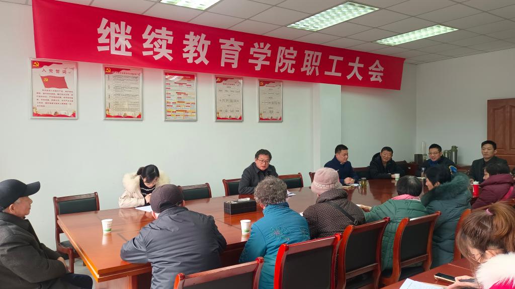1月10日下午,继续教育学院召开年度职工大会,学院全体在职职工和部分退休职工代表参加了会议,会议由继续教育学院院长胡启涛主持。