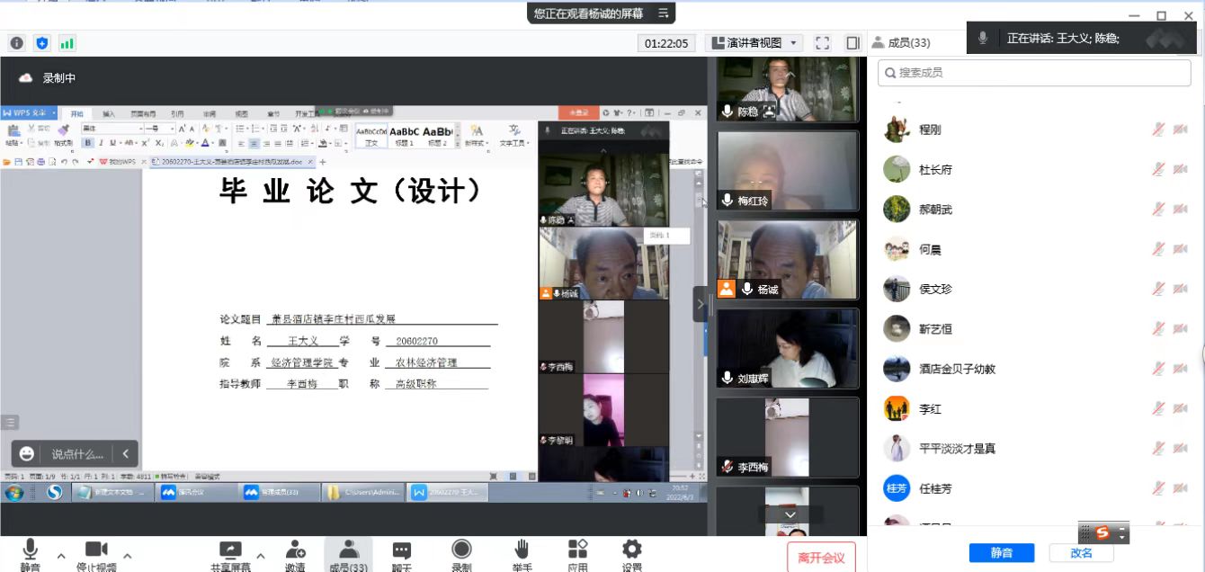 据悉,本次共有35名学员参加线上毕业论文答辩。论文答辩既是一次学习成果的汇报,也是一次专业素质的全面考核。通过开展本次论文答辩工作,参加答辩毕业生纷纷表示受益匪浅。(编辑:张宁瑄 一审:王成 二审:胡启涛)