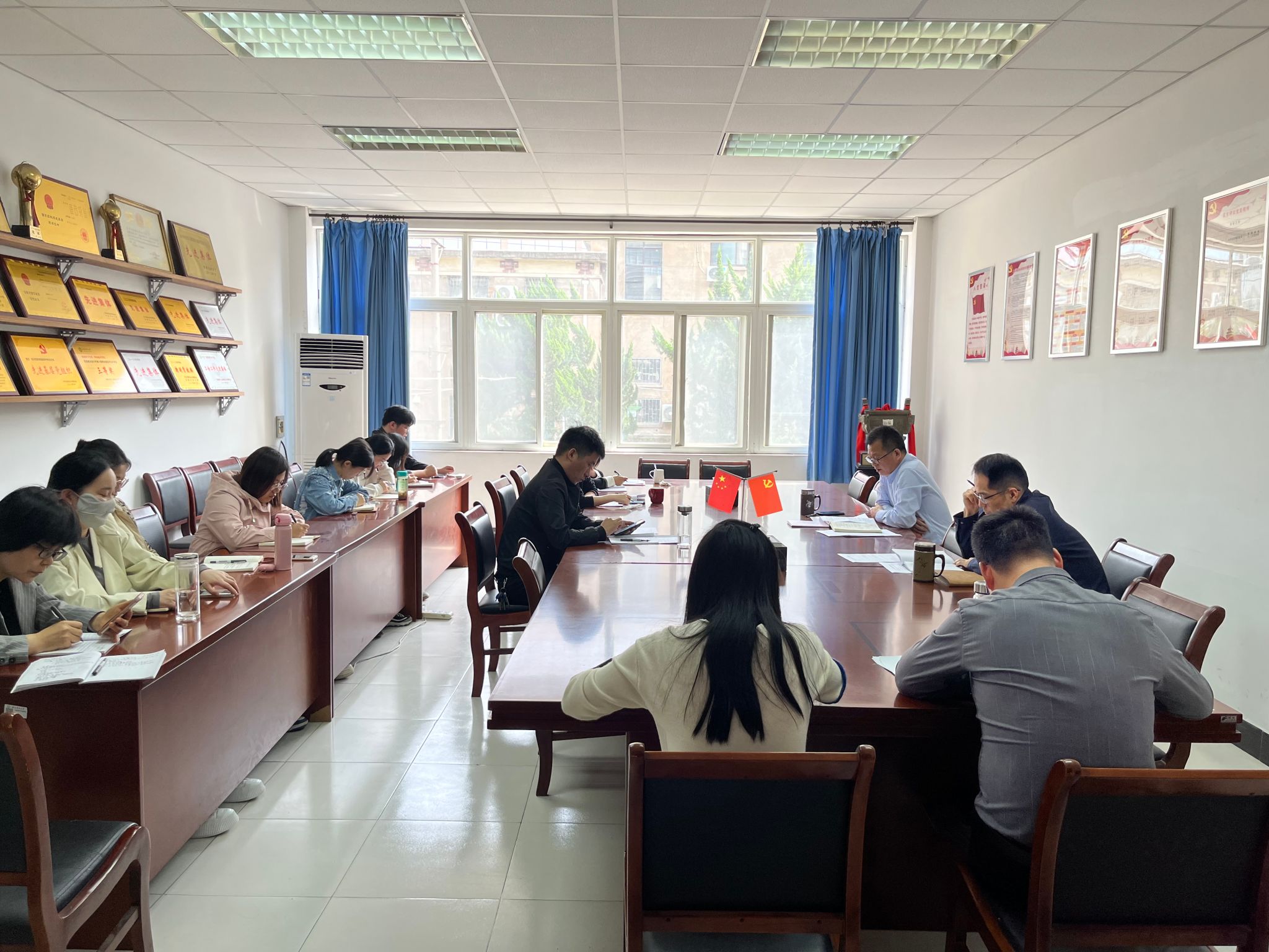 支部书记胡启涛传达了《安徽省开展“第35个爱国卫生月”活动实施方案的通知》,并就开展爱国卫生运动的重大背景、重要意义和具体安排进行了重点阐述,他要求,全体党员干部要发挥表率作用,坚持冲在前、干在前,切切实实把爱国卫生运动工作扛在肩上、放在心上、落实在行动中,共同营造爱护环境、爱护卫生的良好氛围,为学校继续教育事业高质量发展提供内生动力。活动日当天,支部组织全体职工在环境责任区和室内开展了一次环境卫生整治提升行动。