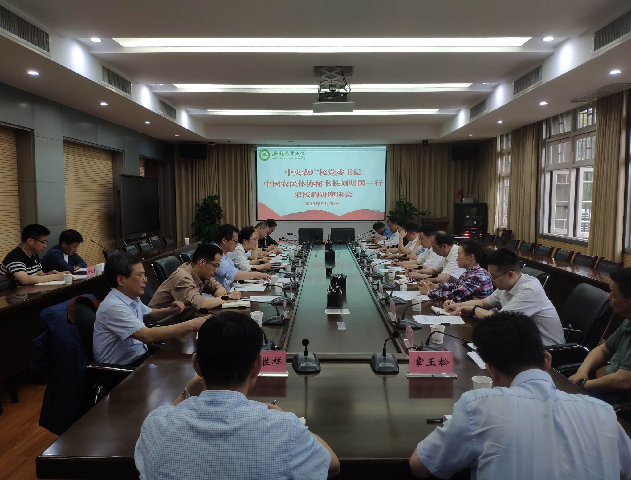 5月30日,中央农广校党委书记、中国农民体协秘书长刘明国一行来校调研交流座谈,安徽省农业农村厅副厅长汤洋陪同调研。校党委书记张庆亮会前接见了刘明国一行,校党委常委、副校长李红主持召开座谈会。