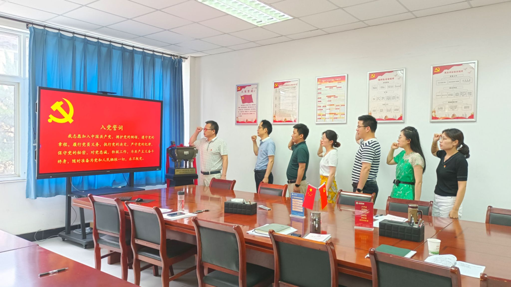 一次重温誓词。在支部书记的带领下,全体党员面向党旗,开展了一次重温入党誓词活动。