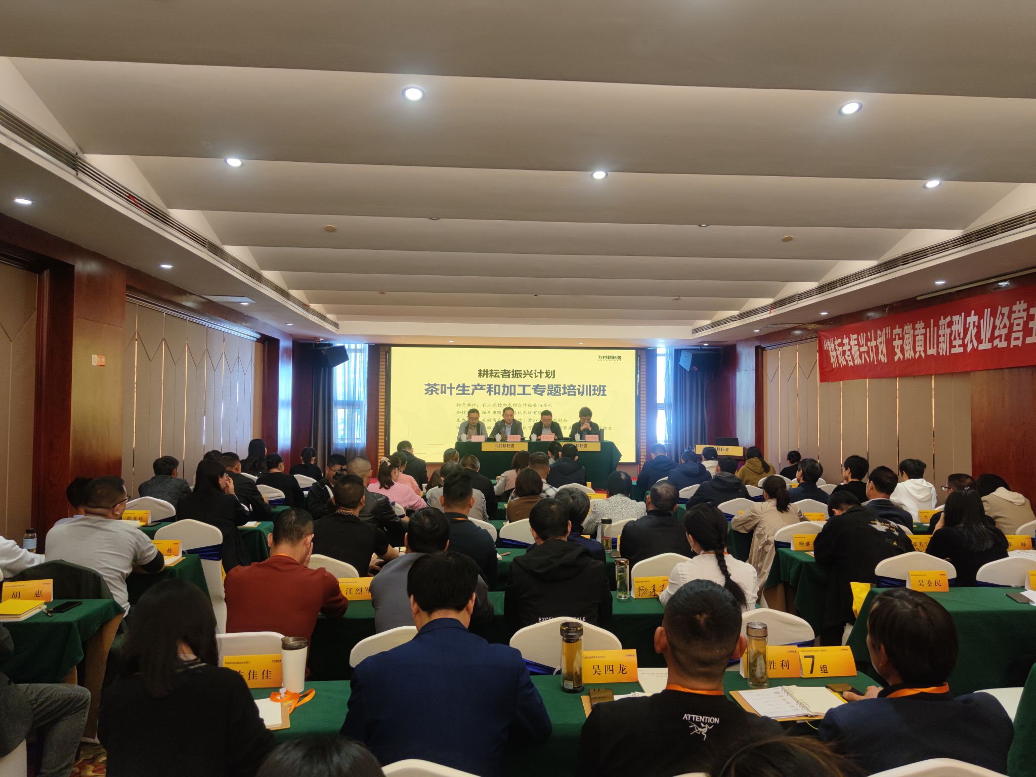10月31日上午,我校与黄山市农业农村局共同承办的“耕耘者振兴计划”安徽省黄山市新型农业经营主体带头人茶叶生产和加工专题培训班在黄山区顺利开班,我校乡村振兴学院党总支书记张晓伟、黄山市农业农村局党组成员朱舜球、省农业农村厅农村合作经济指导处副处长章新振出席开班仪式并致辞,黄山区副区长苏俊颖主持开班式。来自黄山市各县区的各级农业干部、家庭农场、专业合作社及龙头企业等新型农业经营主体 100人参加培训。