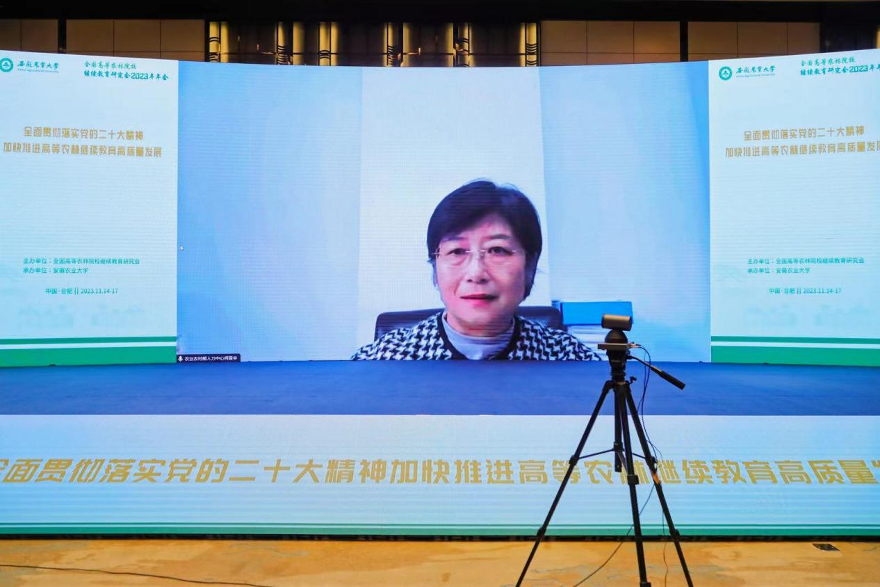 徐璐表示,高质量发展是高等教育的生命线,要坚持高等继续教育规范发展、健康发展、内涵发展,积极推动职业教育、高等教育、基础教育融合发展,探索统筹“三教”的协同创新具体路径。新时代农林院校继续教育大有可为,如何抓机遇,更好地在全面推进乡村振兴过程中发挥重要的支撑、引领作用是留给各高校的时代命题。她呼吁,农林高校继续教育工作者要在服务国家重大战略的站位上来谋篇布局,发挥好农林高校的学科、人才优势,推进高等继续教育高质量发展,开创研究会事业的新局面、新气象。