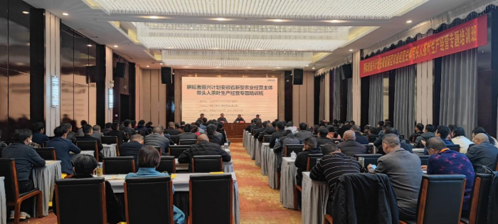 11月20日上午,我校承办的“耕耘者振兴计划”安庆市新型农业经营主体带头人茶叶生产经营专题培训班在安庆市桃花源酒店顺利开班。安徽省农业农村厅农村合作经济指导处副处长章新振,安庆市农业农村局副局长陈群,我校继续教育学院院长胡启涛出席,开班式由我校外国语学院党委书记何如海主持。安庆市各级农经站辅导员、农技推广中心负责人、县市茶产业县级以上示范合作社和家庭农场负责人共100人接受培训。