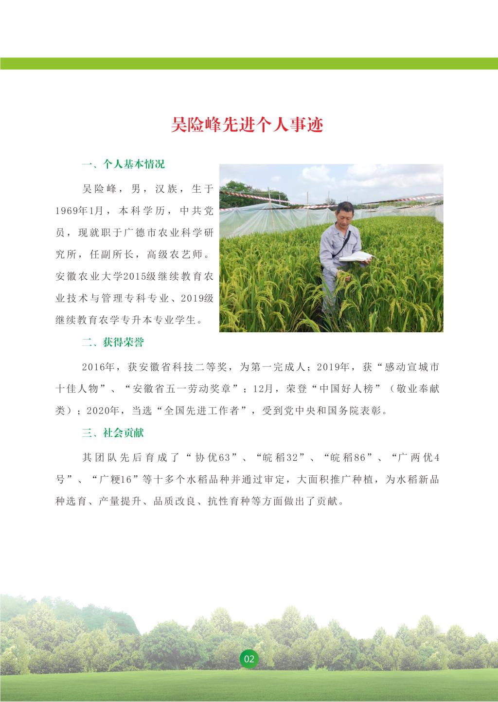 吴险峰 男 广德市农业科学研究所 全国先进工作者