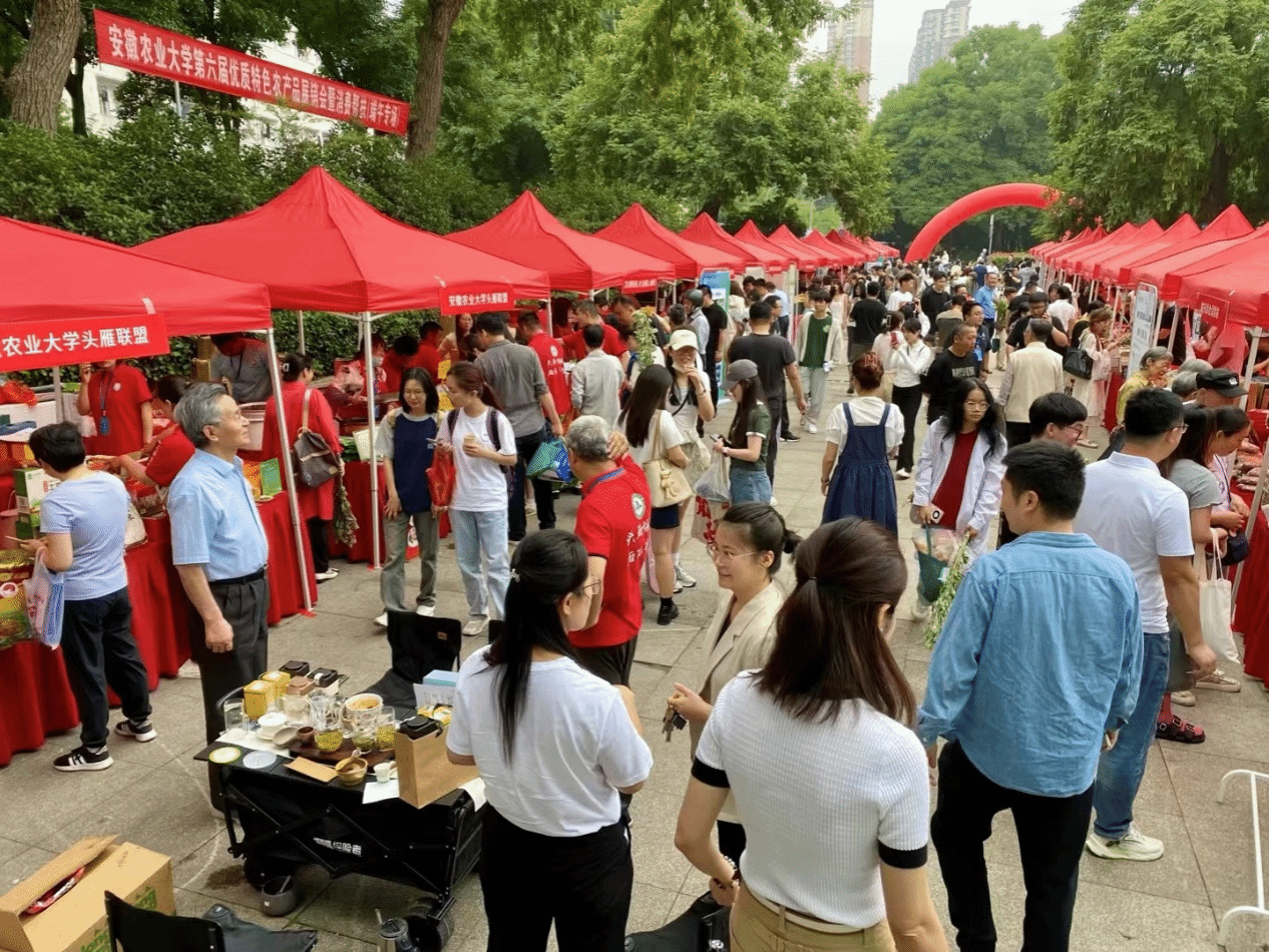 6月7日,在安徽农业大学校园内举办了一场别开生面的特色农产品展销会,安徽农业大学“头雁”联盟应邀参加本次展会,共有10余家优质“头雁”学员农业企业(合作社,家庭农场)带来时令果蔬、特色农作物等120多种。