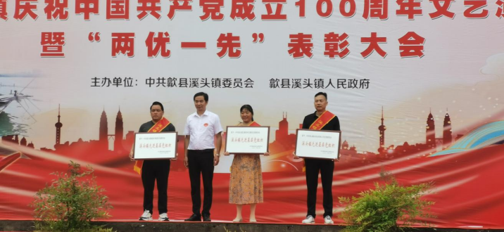 黄山徽谷茶业有限公司(右一)荣获先进基层党组织荣誉称号