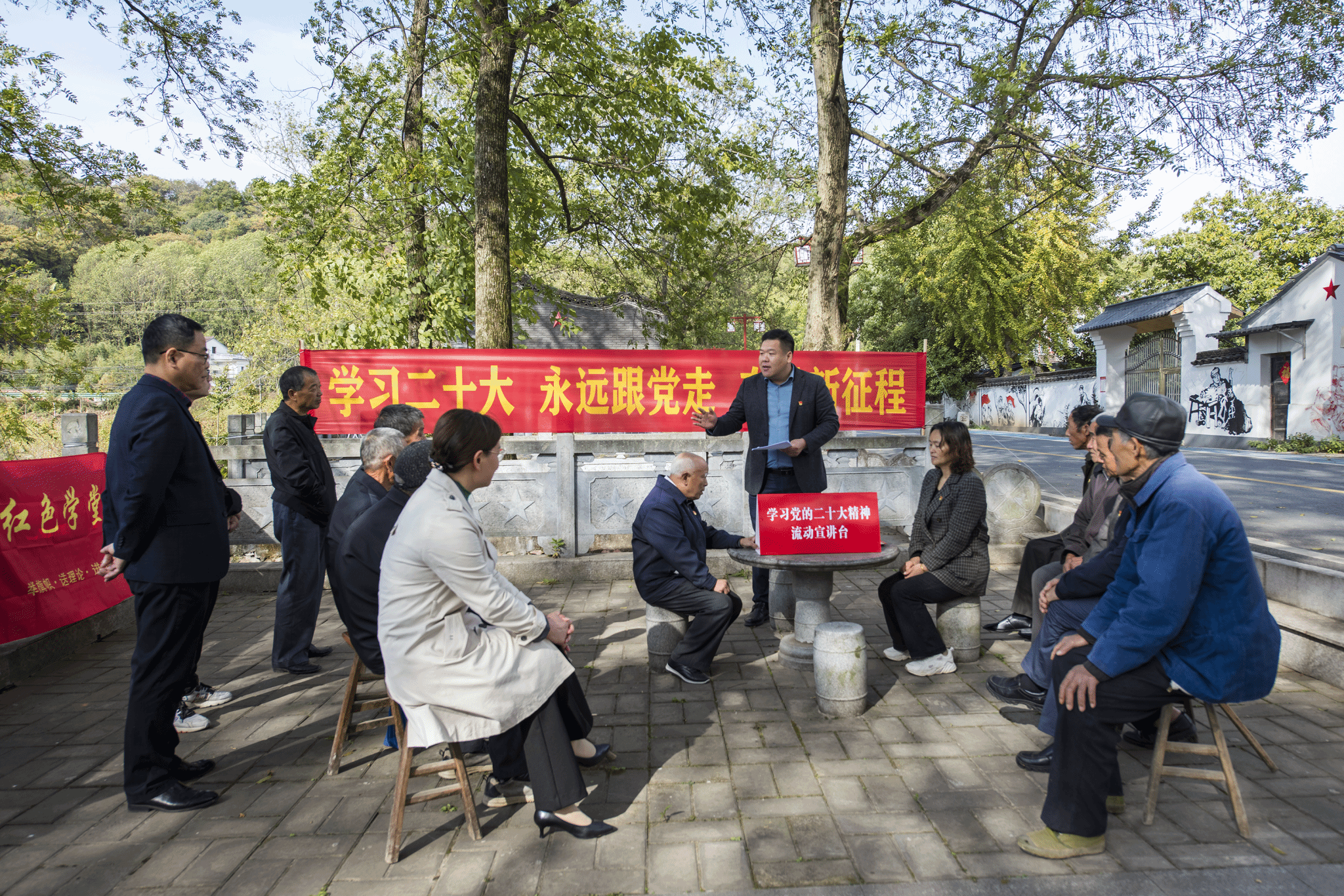 蒋建伟向村民和党员群众宣讲党的二十大精神