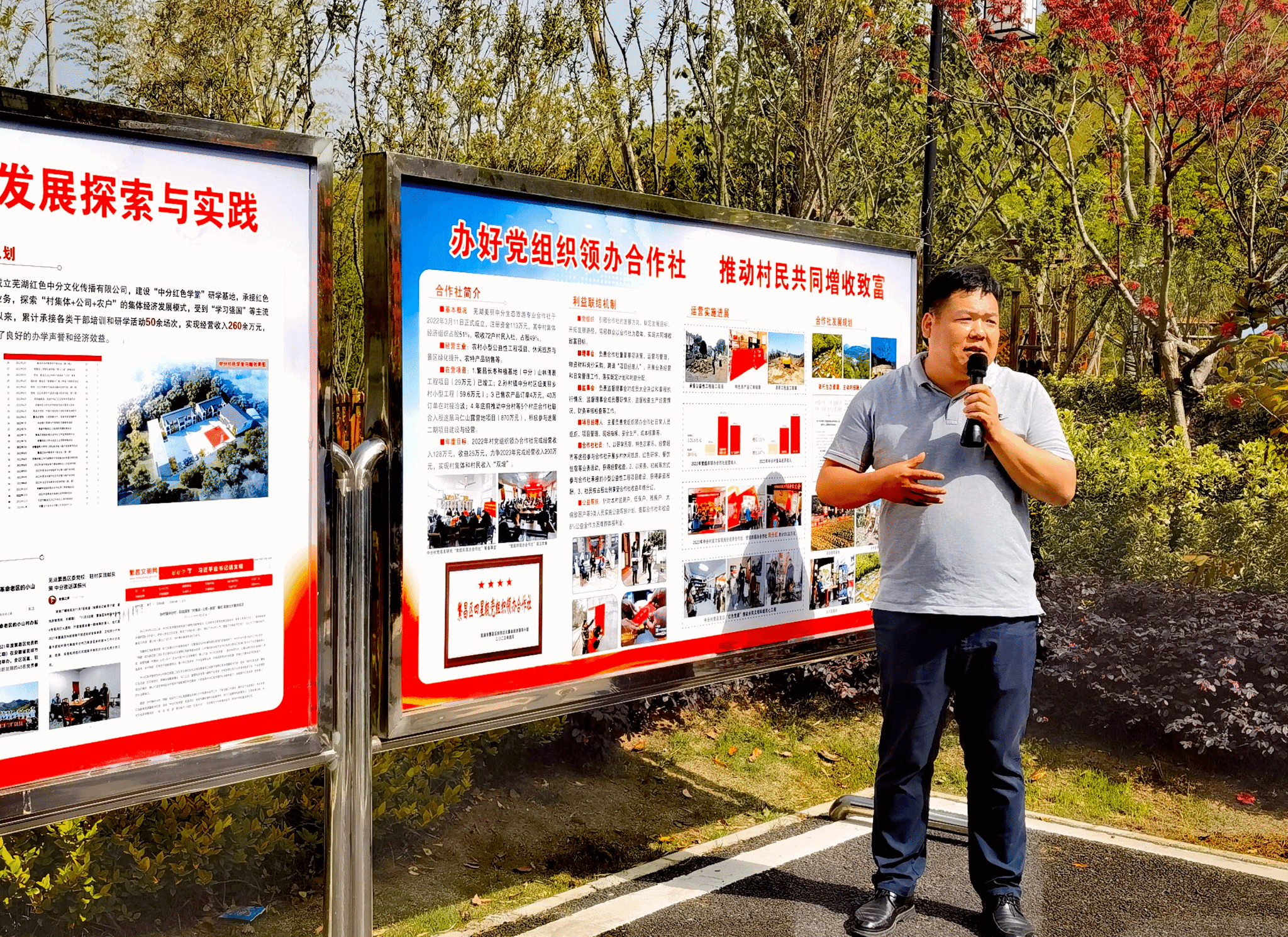 2021年9月,村集体成立芜湖红色中分文化传播有限公司,把本村红色文化及周边文旅资源进行统筹整合,开发了红色研学和乡村休闲旅游精品路线,游客也越来越多了。一年多来,公司通过承接乡村干部实训、红色主题研学和休闲旅游,探索了“村集体+公司+农户”的发展模式,累计经营收入超260万元,直接带动农户及经营主体增收60余万元。